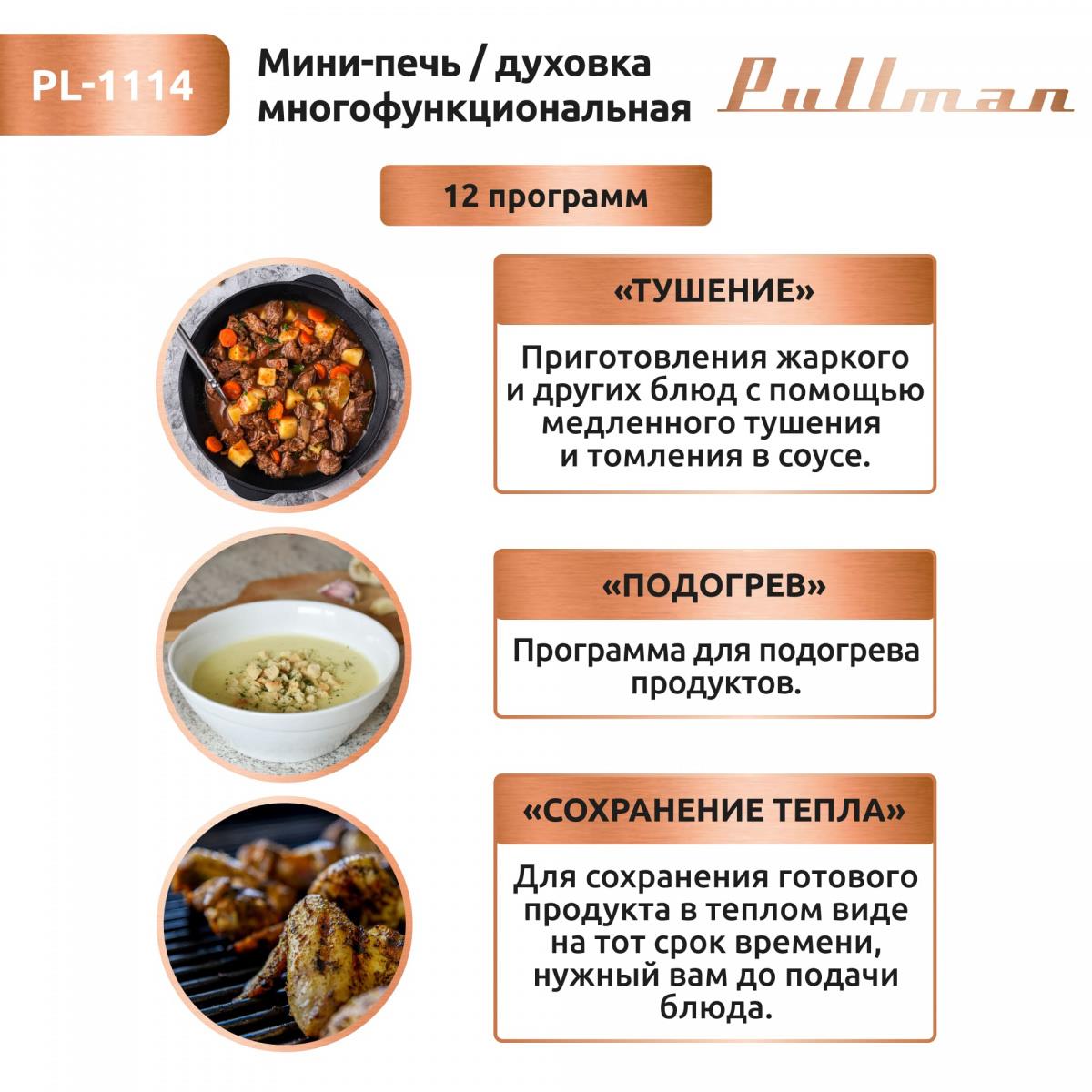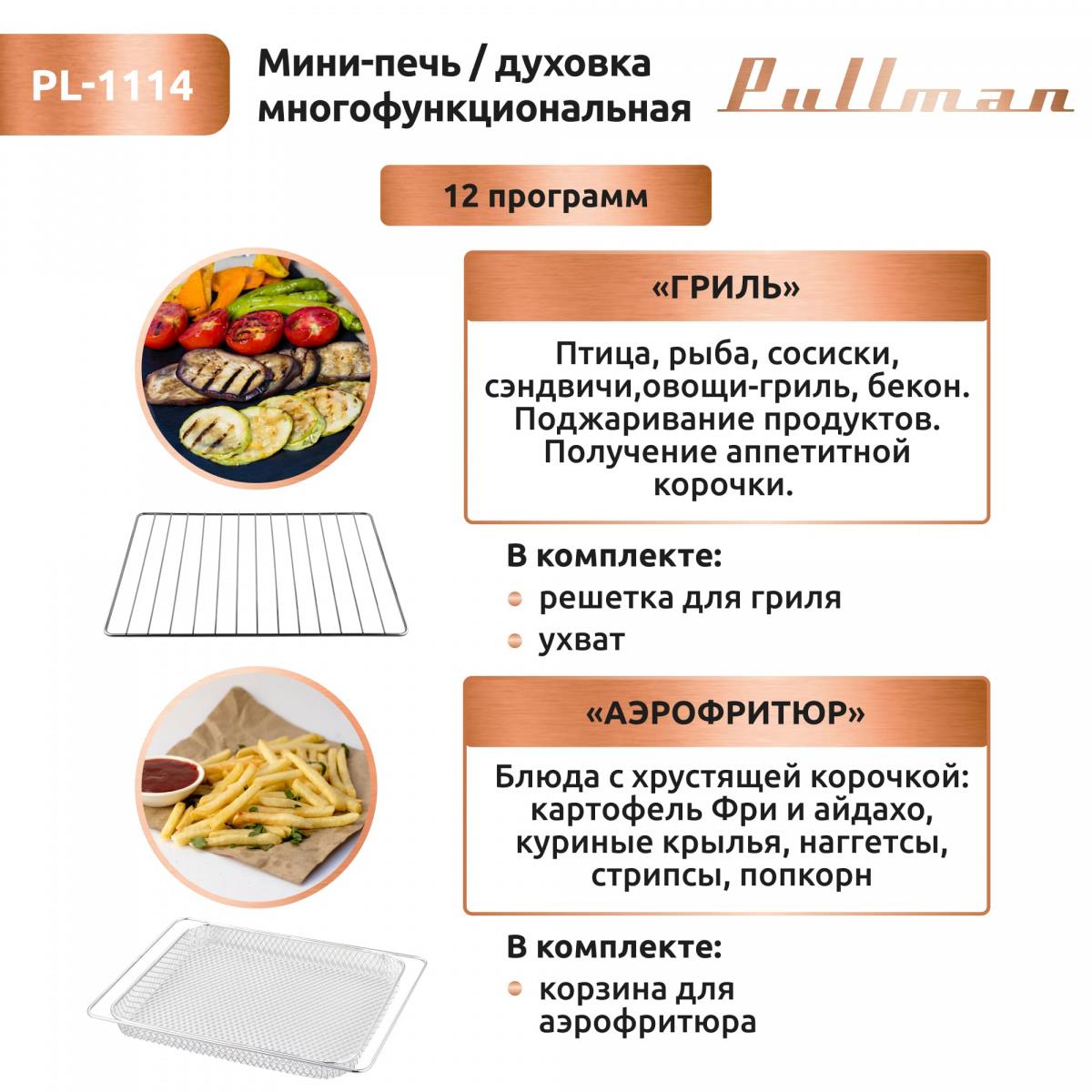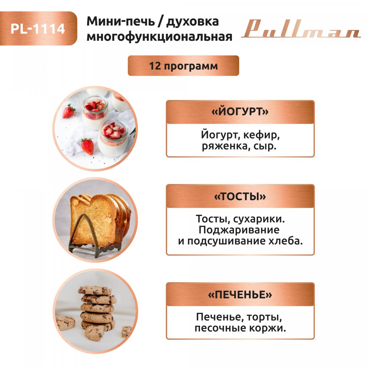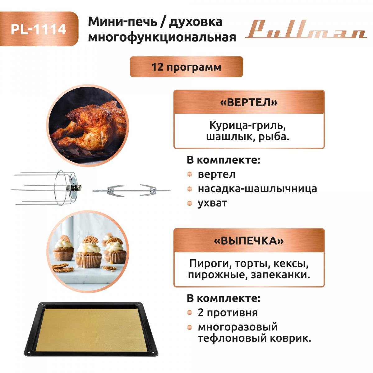 Электропечь Pullman PL-1114. 5 в 1: сушилка, мини-печь, аэрогриль, шашлычница, йогуртница (30 л /2000 Вт /) - Интернет-магазин Матрица: бытовая техника, электроника, товары для дома и др.