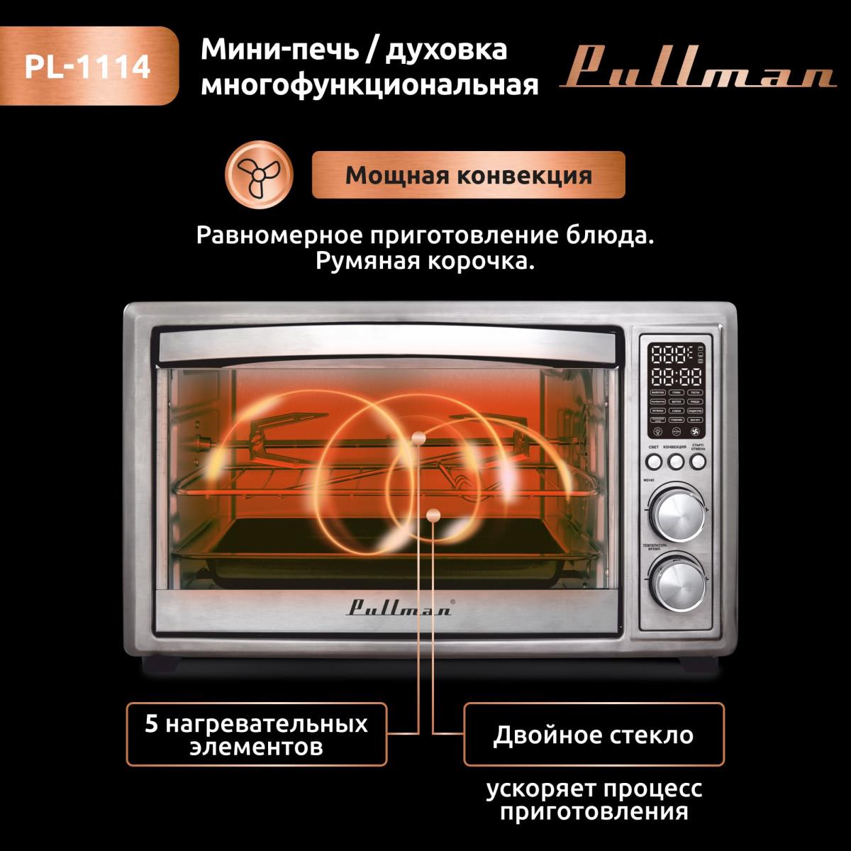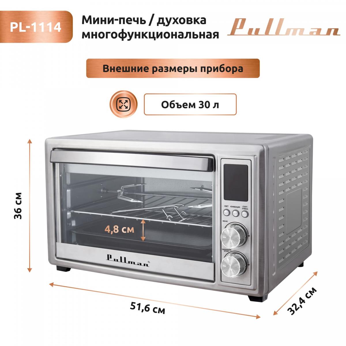 Электропечь Pullman PL-1114. 5 в 1: сушилка, мини-печь, аэрогриль, шашлычница, йогуртница (30 л /2000 Вт /)