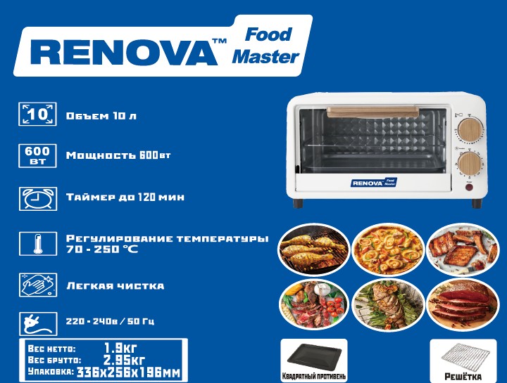 Электропечь Renova MO-10TW1 (10 л /600 Вт /белый) - Интернет-магазин Матрица: бытовая техника, электроника, товары для дома и др.