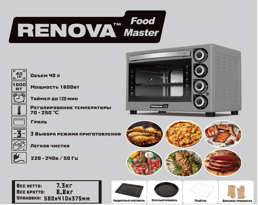 Электропечь Renova MO-40GTS1 (40 л /1600 Вт /серебристый) - Интернет-магазин Матрица: бытовая техника, электроника, товары для дома и др.