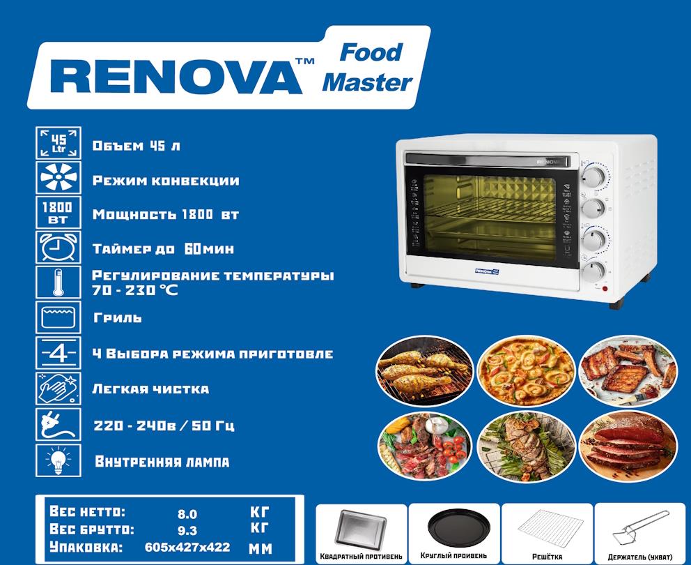 Электропечь Renova MO-45GFLTW1 (45 л /1800 Вт /белый) - Интернет-магазин Матрица: бытовая техника, электроника, товары для дома и др.