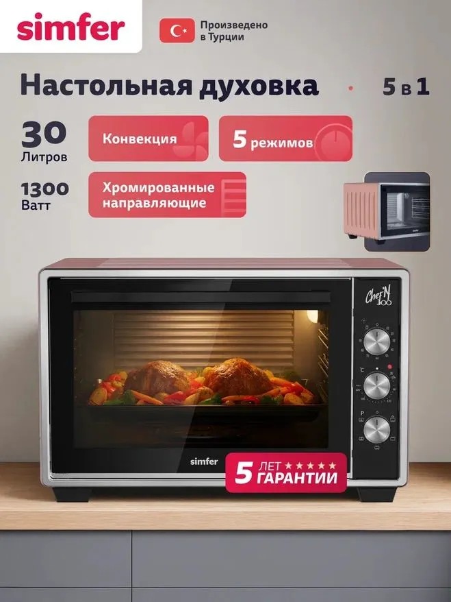 Электропечь Simfer M30X15 (30 л /1300 Вт /розовый) - Интернет-магазин Матрица: бытовая техника, электроника, товары для дома и др.