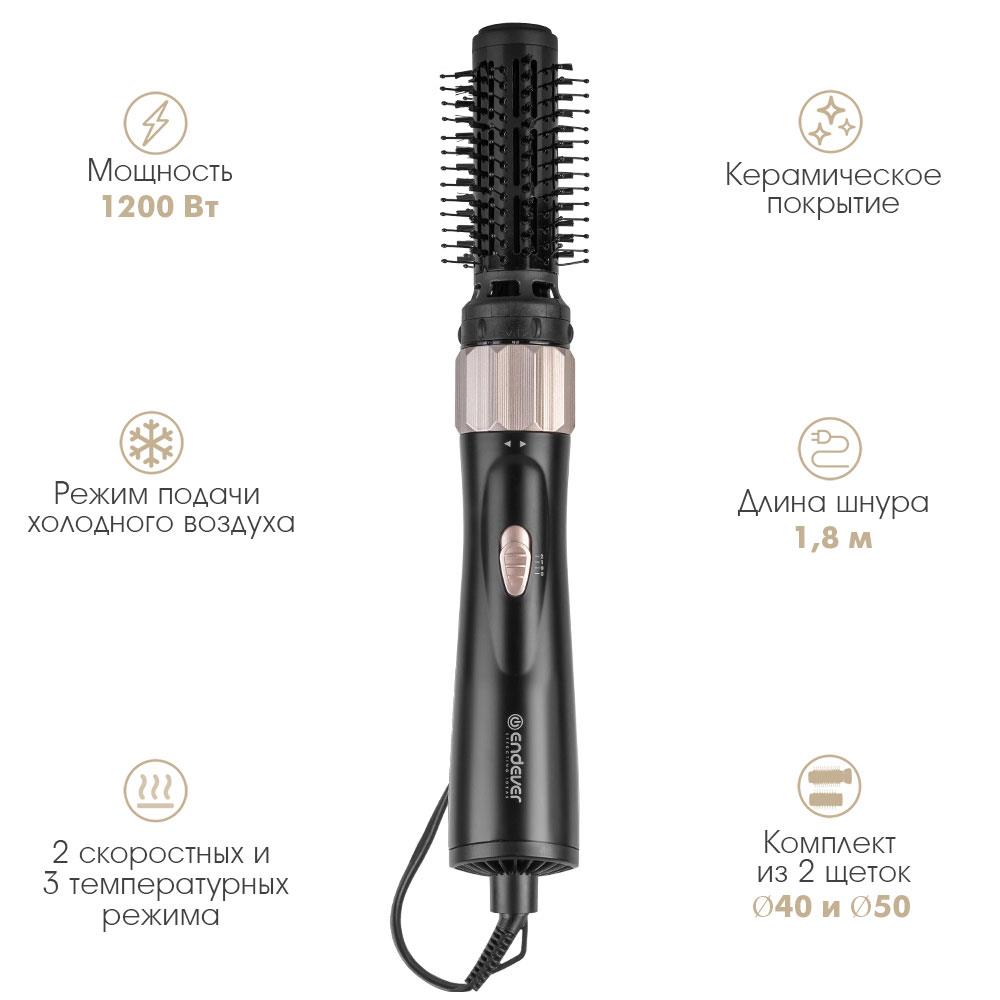 Фен-щетка Endever Aurora-504 (1200 Вт /черный, розовое золото) - Интернет-магазин Матрица: бытовая техника, электроника, товары для дома и др.
