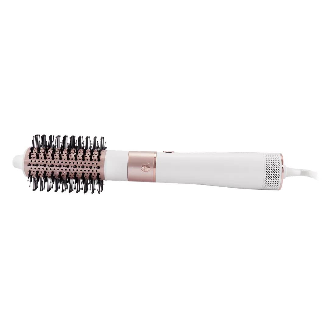 Фен-расческа 5 в 1 для профессиональной укладки волос. Мощность 1200 Вт 3 температурно-скоростных режима Генератор ионов. 5 сменных насадок: 4 профессиональных брашинга с минеральным покрытием; Multi Mineral с эффектом инфракрасного излучения; 1 концентратор; Ультрамягие атравматичные металлические щетины для двойного блеска Эко-корпус из переработанного пластика, упаковка из переработанного картона Вращающийся шнур 360°