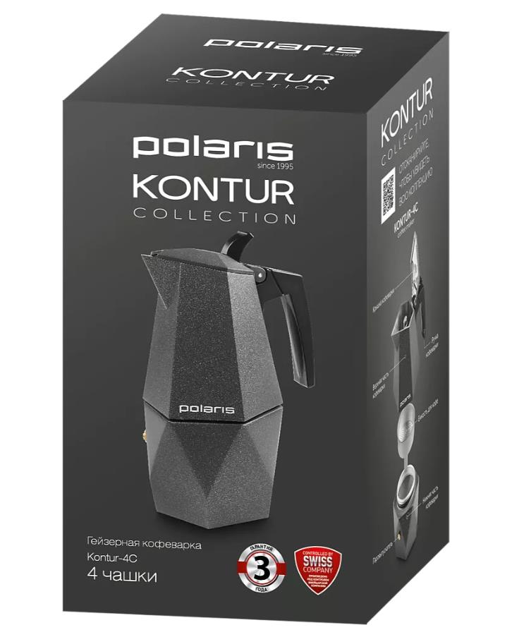 Гейзерная кофеварка Polaris Kontur 4C cерый, 0,3 л (0,3 л ) - Интернет-магазин Матрица: бытовая техника, электроника, товары для дома и др.