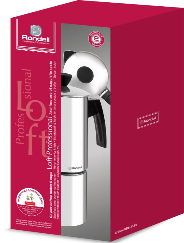Гейзерная кофеварка Rondell Loft Professional RDS-1512 (ST) стальной, 0.3 л. (0,3 л ) - Интернет-магазин Матрица: бытовая техника, электроника, товары для дома и др.