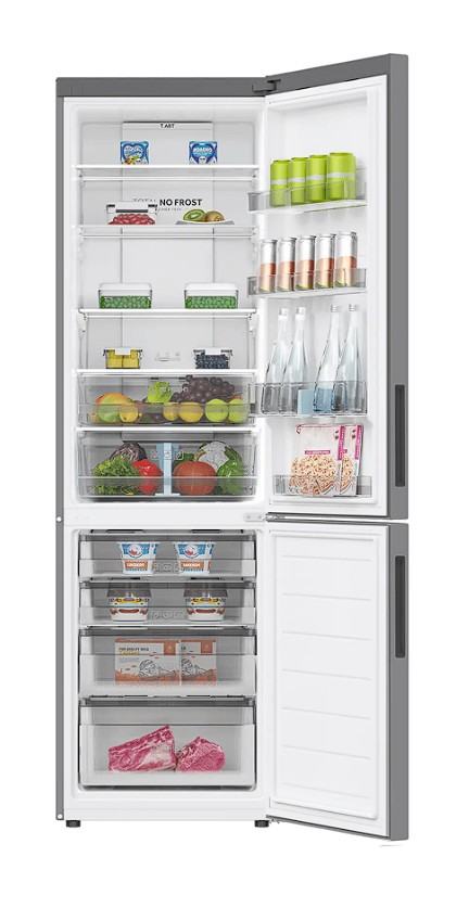 HAIER C2F620CFU1 — двухкамерный холодильник с лаконичным, но запоминающимся дизайном, цвета серебристый металлик. Он будет отлично смотреться на любой современной кухне. Высота холодильника — 199,8 см, он вместительный, что понравится большим семьям и тем, кто любит готовить. Электронное управление с дисплеем делает его эксплуатацию простой и удобной. Многопоточное охлаждение MultiFlow равномерно распределяет холодный воздух — нет разницы температуры в нижней и верхней частях отделения. Технология антибактериальной защиты T.ABT использует свойства природного минерала турмалина для обеззараживания воздуха в холодильнике, борьбы с бактериями и неприятными запахами. 0º Zone — это специальный контейнер для хранения охлаждённого мяса, морепродуктов, сыров и различных деликатесов, в нём можно изменять влажность, а температура всегда около 0 градусов. Овощи и фрукты удобно хранить в выдвижном контейнере с разделителем пространства внутри. Освещение в холодильном отделении (278 л) светодиодное — яркое, долговечное и экономичное.