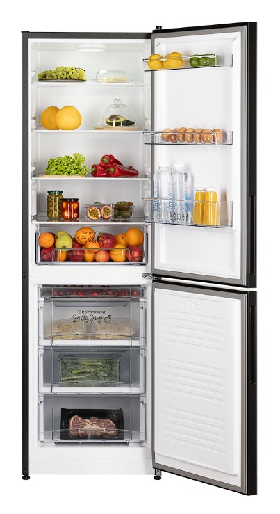 Двухкамерный холодильник NORDFROST NRG 162NF DTM из новой коллекции с фасадом из тёмно-серого матового стекла, имитирующего натуральный камень, станет стильным и солидным акцентом интерьера вашей кухни. Общий объём 310 литров и нижнее расположение морозильной камеры делают холодильник удобным в повседневной эксплуатации. Холодильная камера поддерживает температуру от 0 °C до +8 °C, а морозильная камера объёмом 105 литров с системой No Frost замораживает до 3,5 кг продуктов в сутки и полностью исключает образование наледи. Лоток для заморозки ягод позволяет сохранить сезонный урожай в идеальном виде. Модель работает тихо — уровень шума не превышает 41 дБ, а класс энергоэффективности A+ и фреон R600a обеспечивают стабильное охлаждение при минимальном потреблении электроэнергии. Холодильник рассчитан на климатические классы SN/N/ST/T —универсальное решение для любых условий. Внутреннее пространство организовано с заботой о комфорте: четыре полки из закалённого стекла регулируются по высоте и выдерживают значительную нагрузку, большой выдвижной ящик поддерживает оптимальный микроклимат для овощей и фруктов, а дверцы оснащены тремя полками для бутылок и соусов. Для дополнительного удобства предусмотрены LED-подсветка, съёмный уплотнитель и возможность перенавешивания дверей.