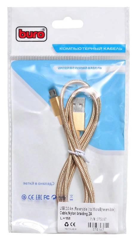 Кабель соединительный Buro Reversible Braided BHP MICROUSB 1M BRAIDED USB 2.0 A Micro USB 2.0 B золотой 1 м