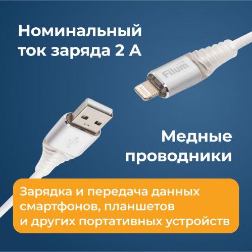 Кабель соединительный Filum FL-CPro-U2-AM-LM-1M-L1 USB 2.0 A Lightning 8P белый 1 м - Интернет-магазин Матрица: бытовая техника, электроника, товары для дома и др.