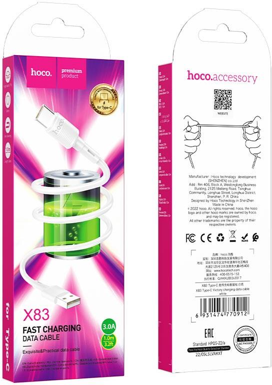 Кабель соединительный Hoco X83 USB 2.0 A USB Type-C белый 1 м - Интернет-магазин Матрица: бытовая техника, электроника, товары для дома и др.