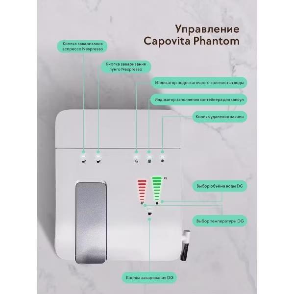 Кофемашина Capovita Phantom CN-ND0101 White (1500 Вт /20 бар/белый) - Интернет-магазин Матрица: бытовая техника, электроника, товары для дома и др.