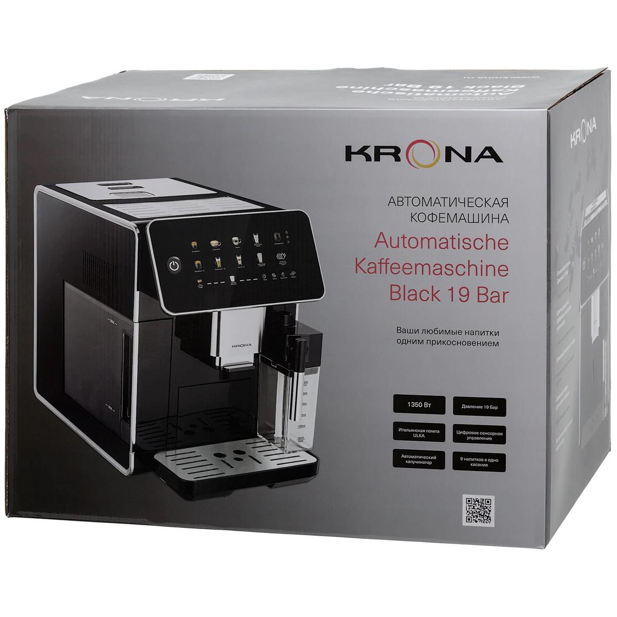 Кофемашина Krona Automatische Kaffeemaschine Black 19 Bar (1350 Вт /19 бар/черный) - Интернет-магазин Матрица: бытовая техника, электроника, товары для дома и др.