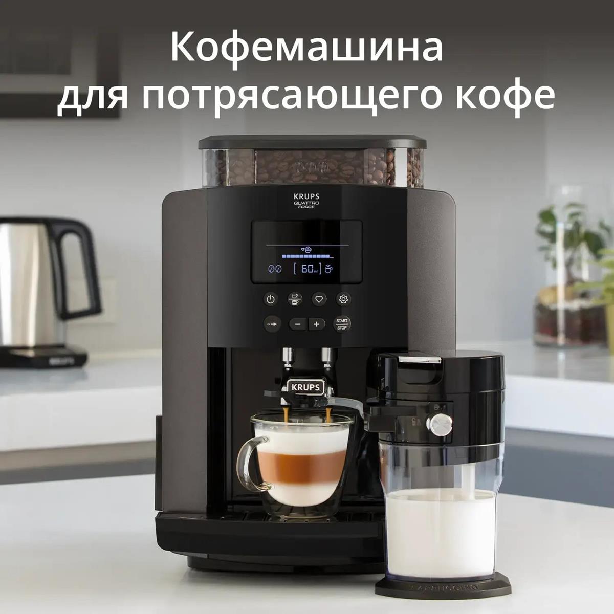 Кофемашина KRUPS EA819E10 (1450 Вт /15 бар/коричневый, черный) - Интернет-магазин Матрица: бытовая техника, электроника, товары для дома и др.