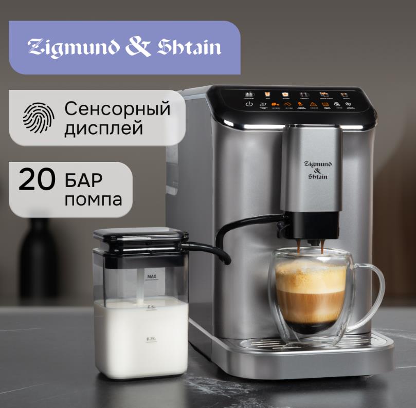 Кофемашина Zigmund & Shtain ZACM-2000 (1350 Вт /20 бар/серый металлик) - Интернет-магазин Матрица: бытовая техника, электроника, товары для дома и др.