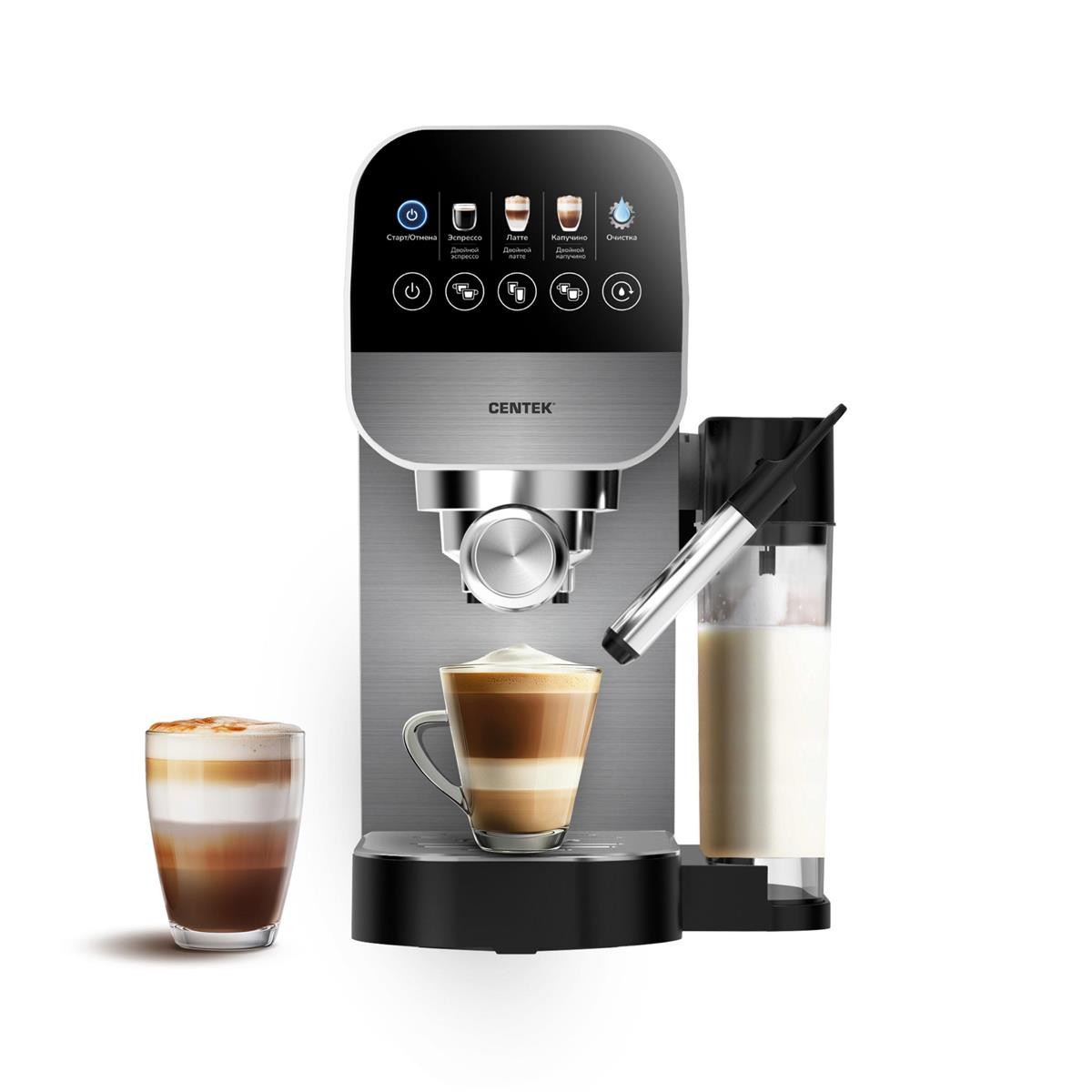 Кофеварка Centek стильное и современное решение на вашей кухне. Приготовьте эспрессо, капучино или латте и насладитесь ароматным кофе, который взбодрит, придаст энергии и подарит хорошее настроение на целый день.