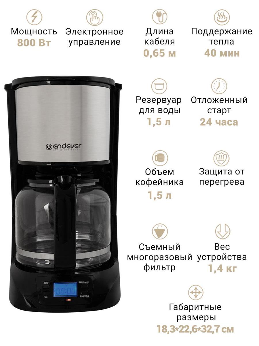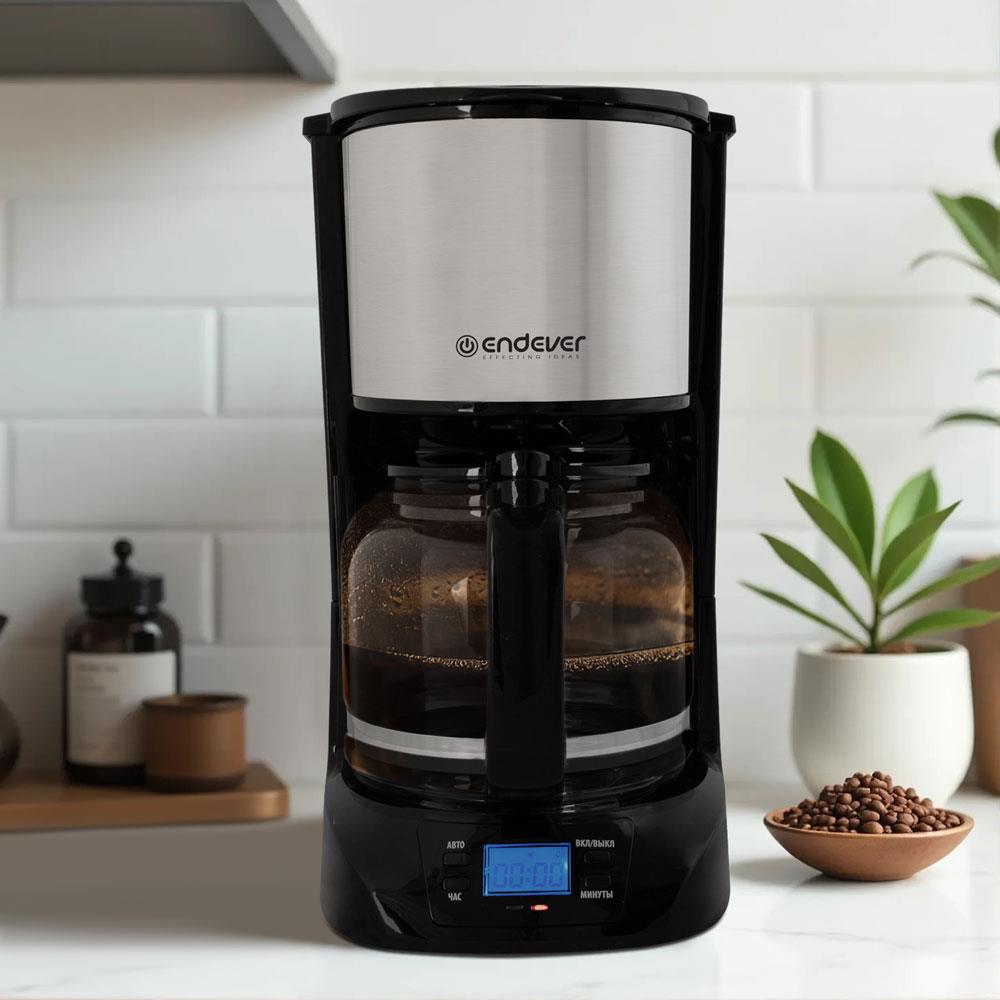 Кофеварка Endever Costa-1044, мощность 800 Вт, цвет-стальной/черный, объем 1,5л, LCD дисплей, по 4 шт/уп (капельная/1,5 л /800 Вт ) - Интернет-магазин Матрица: бытовая техника, электроника, товары для дома и др.