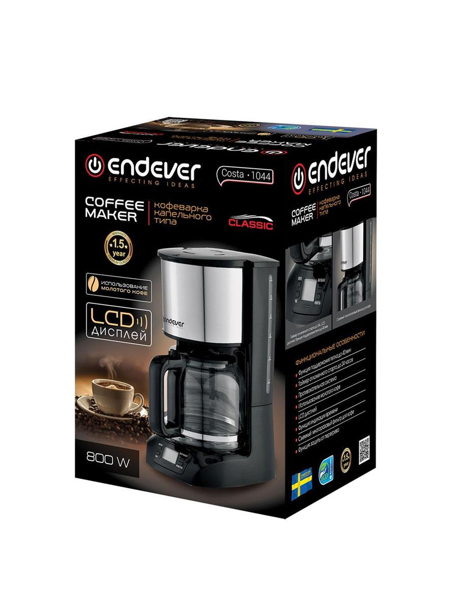 Кофеварка Endever Costa-1044, мощность 800 Вт, цвет-стальной/черный, объем 1,5л, LCD дисплей, по 4 шт/уп (капельная/1,5 л /800 Вт )