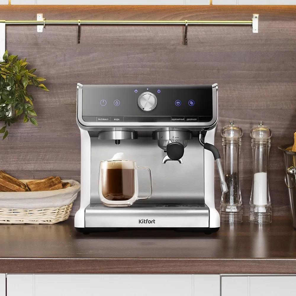 Кофеварка Kitfort КТ-7170 серебристый/белый (рожковая//2900 Вт ) - Интернет-магазин Матрица: бытовая техника, электроника, товары для дома и др.