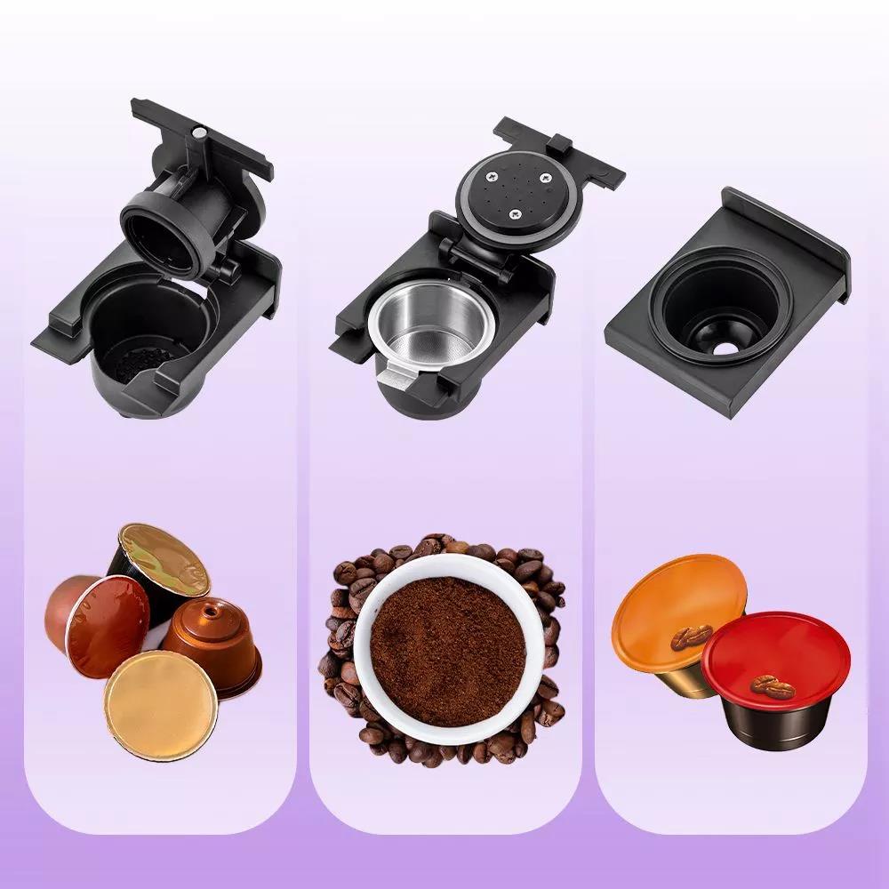 Кофеварка «3 в 1» КТ-7227 — многофункциональное устройство, сочетающее в себе функции капсульной и рожковой кофеварки. Капсульно-рожковая кофеварка поможет приготовить эспрессо, лунго, американо, а также множество других видов кофе на ваш вкус. Благодаря адаптерам кофеварка подходит для капсул типа Nespresso Original и Dolce Gusto, а также для молотого кофе. Кофе в капсулах может долго храниться благодаря герметичной упаковке.