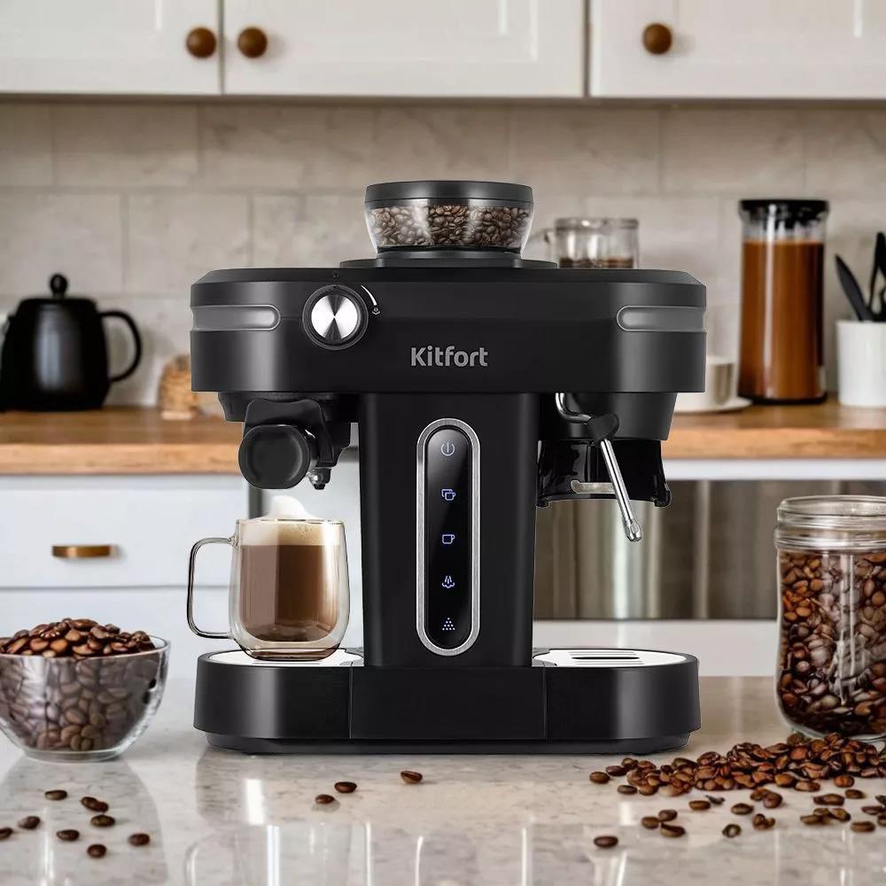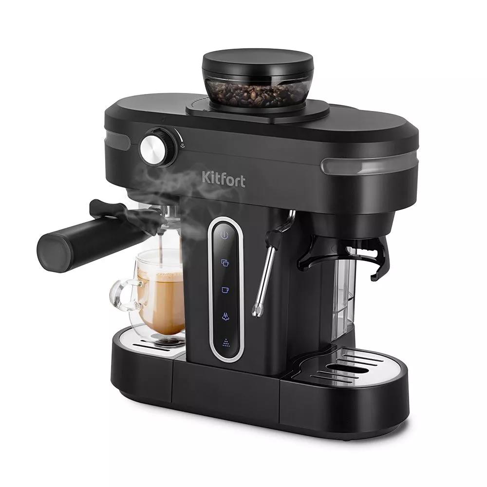 Кофеварка Kitfort КТ-7375 черный (рожковая//1150 Вт )