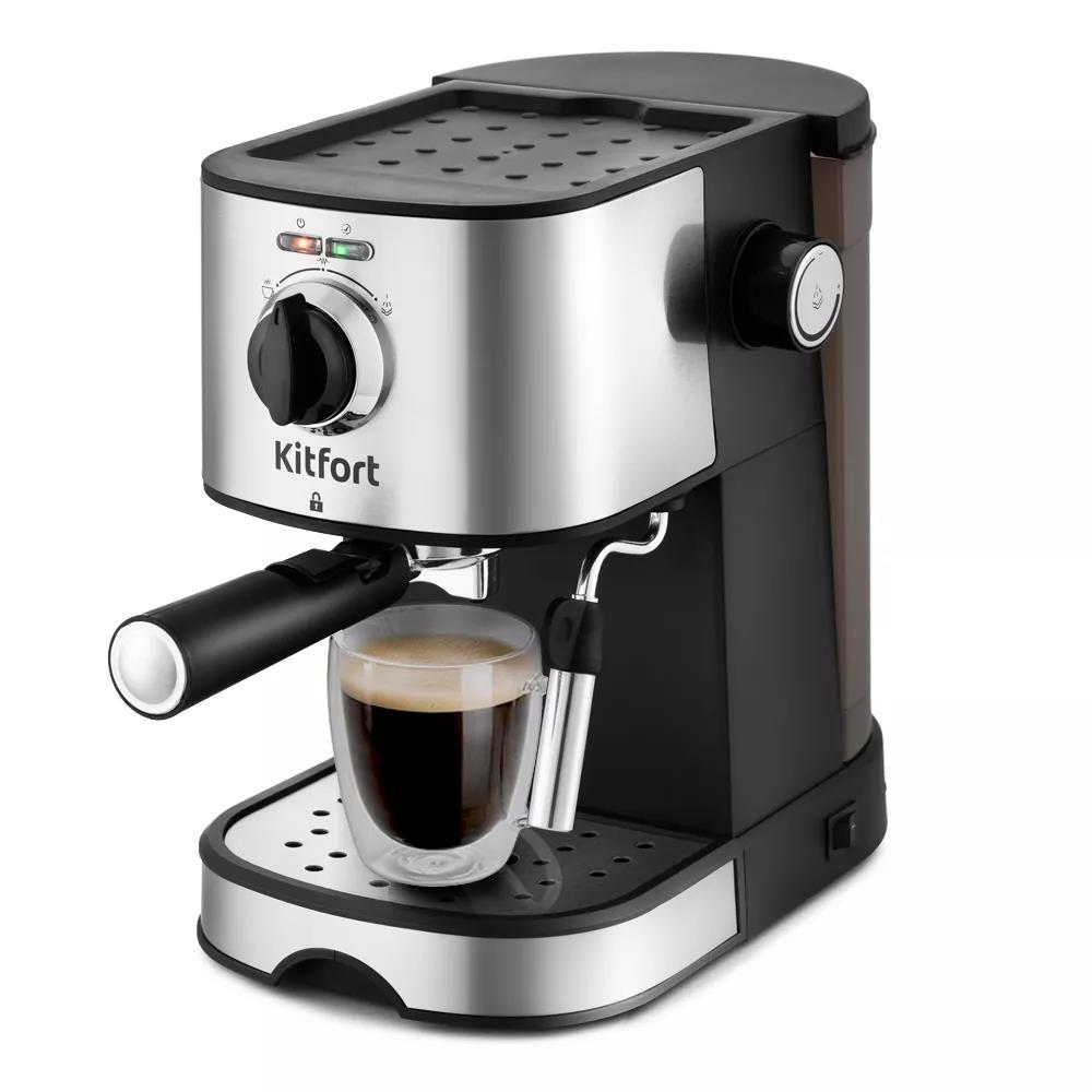 Кофеварка Kitfort KT-753 черный/нержавеющая сталь (рожковая//850 Вт ) - Интернет-магазин Матрица: бытовая техника, электроника, товары для дома и др.