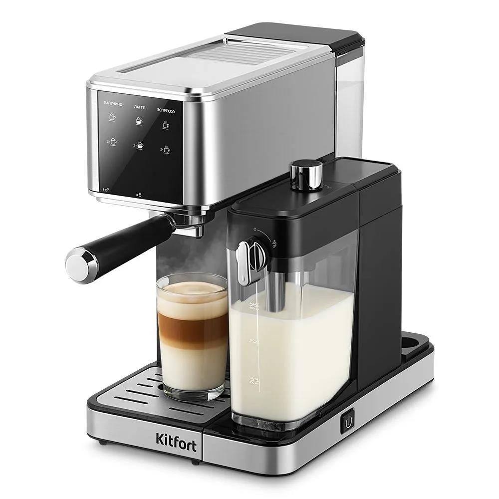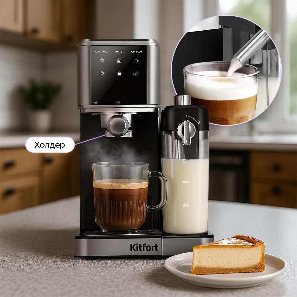 Кофеварка Kitfort КТ-7693 1350Вт нержавеющая сталь/черный (рожковая/1 л /1350 Вт ) - Интернет-магазин Матрица: бытовая техника, электроника, товары для дома и др.