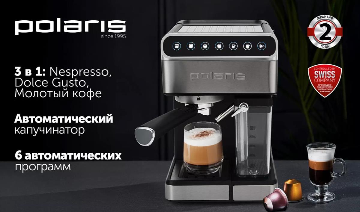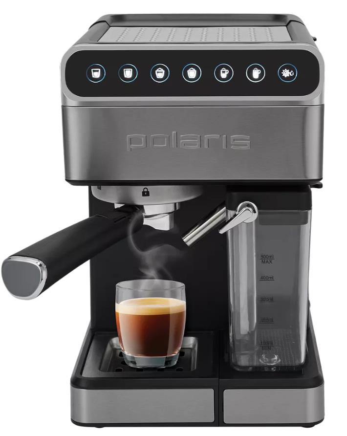 Кофеварка Polaris PCM 1535E черный/серебристый (рожковая//1400 Вт ) - Интернет-магазин Матрица: бытовая техника, электроника, товары для дома и др.