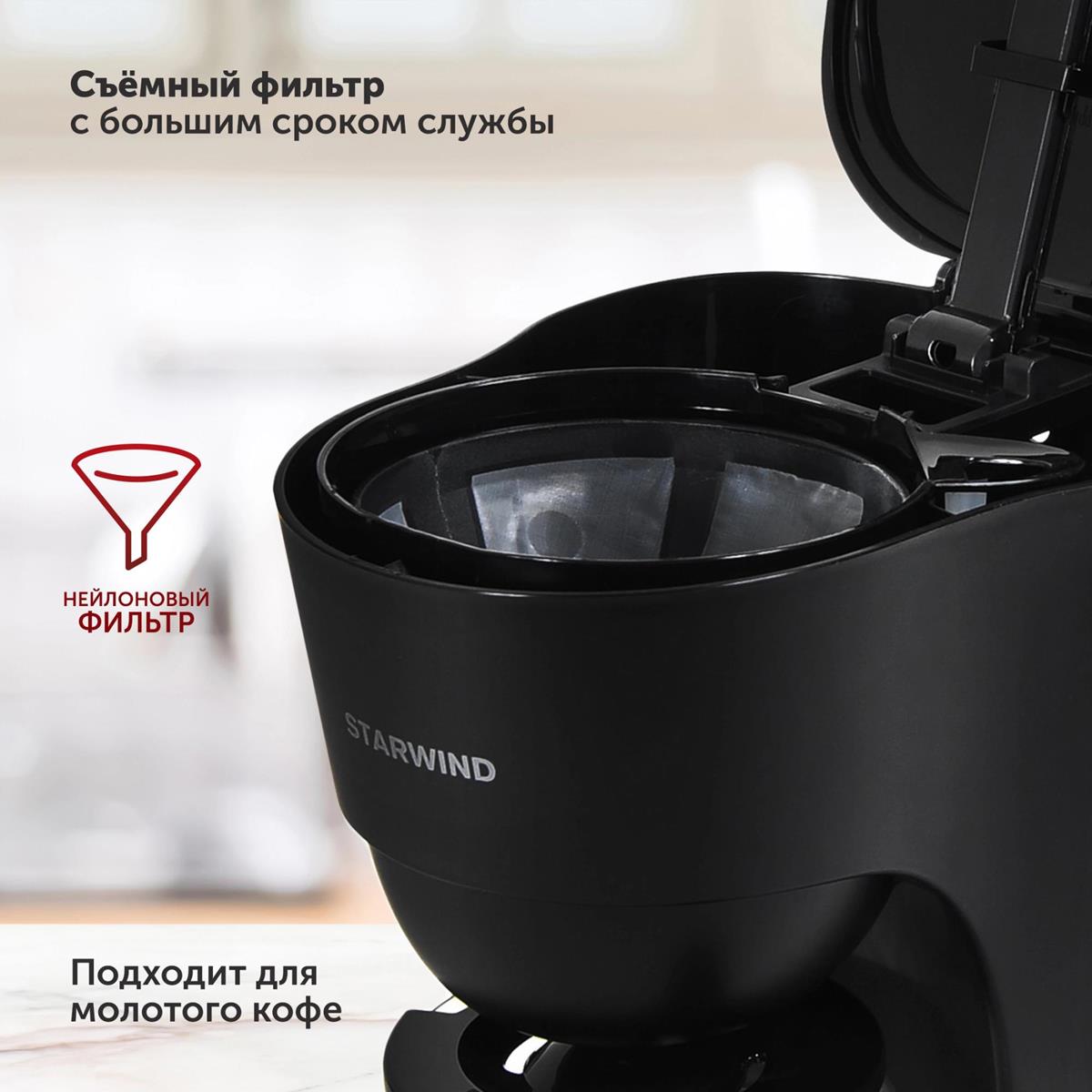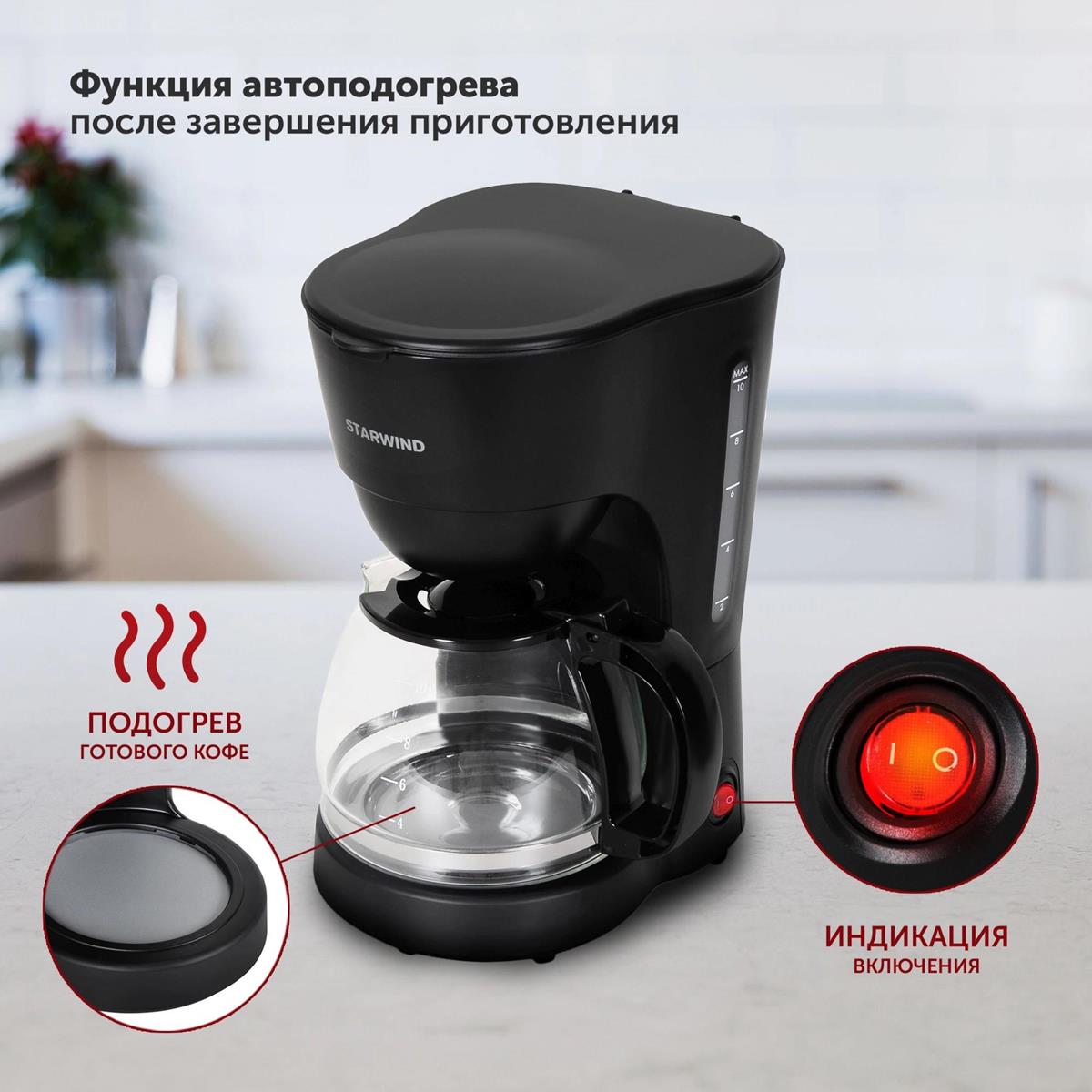 Кофеварка STARWIND STD1212 черный, исп. кофе - молотый, 1.25 л, 600 Вт. (капельная/1,25 л /600 Вт ) - Интернет-магазин Матрица: бытовая техника, электроника, товары для дома и др.