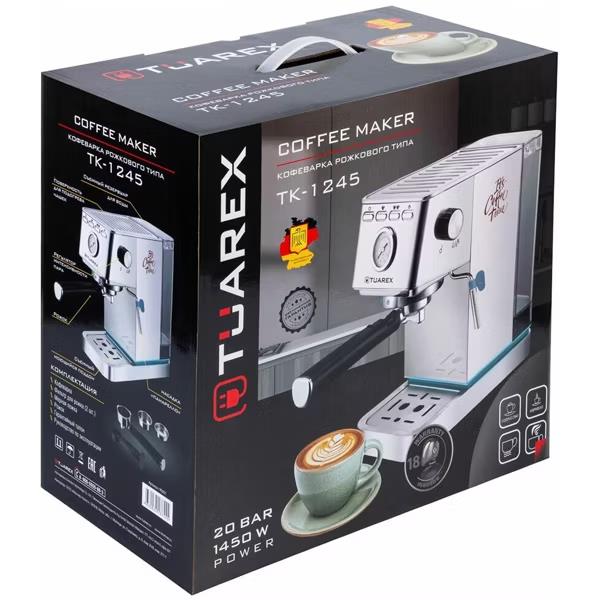 Кофеварка TUAREX TK-1245 серебристый/ серый (рожковая//1450 Вт ) - Интернет-магазин Матрица: бытовая техника, электроника, товары для дома и др.