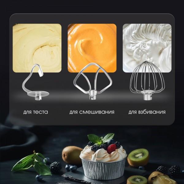 Кухонная машина De Luxe ZKM-1050 представляет собой планетарный миксер с 3-мя насадками для замешивания теста, взбивания крема и жидких смесей, а также для смешивания ингредиентов. Кроме того, в конструкции предусмотрена возможность подключения мясорубки, что значительно увеличивает функциональность прибора и при его компактных размерах делает его универсальным и незаменимым помощником на кухне.