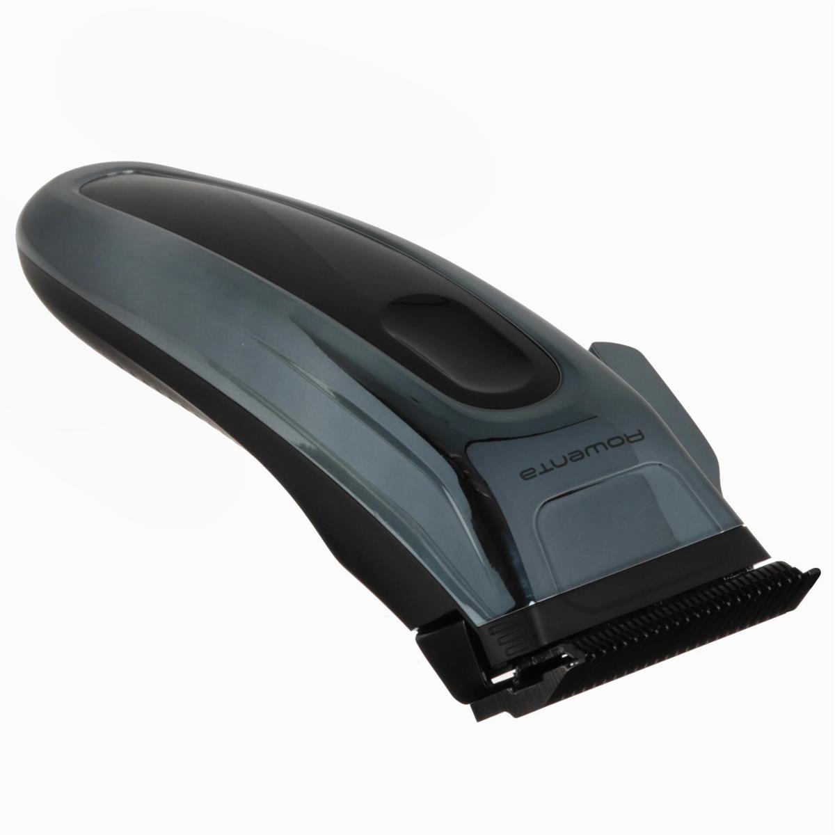 ROWENTA TN1551E0 Barber Experience – машинка для стрижки бороды и усов, головы. С помощью смены насадок вы можете настраивать длину от 0.5 мм (без насадки) до 25 мм. Самозатачивающиеся ножи требуют регулярной смазки. Насадки можно промывать для очистки от волосков. Аккумуляторная модель выдерживает до 150 минут без подзарядки. При низком заряде устройство можно подключать к сети и продолжать работу.