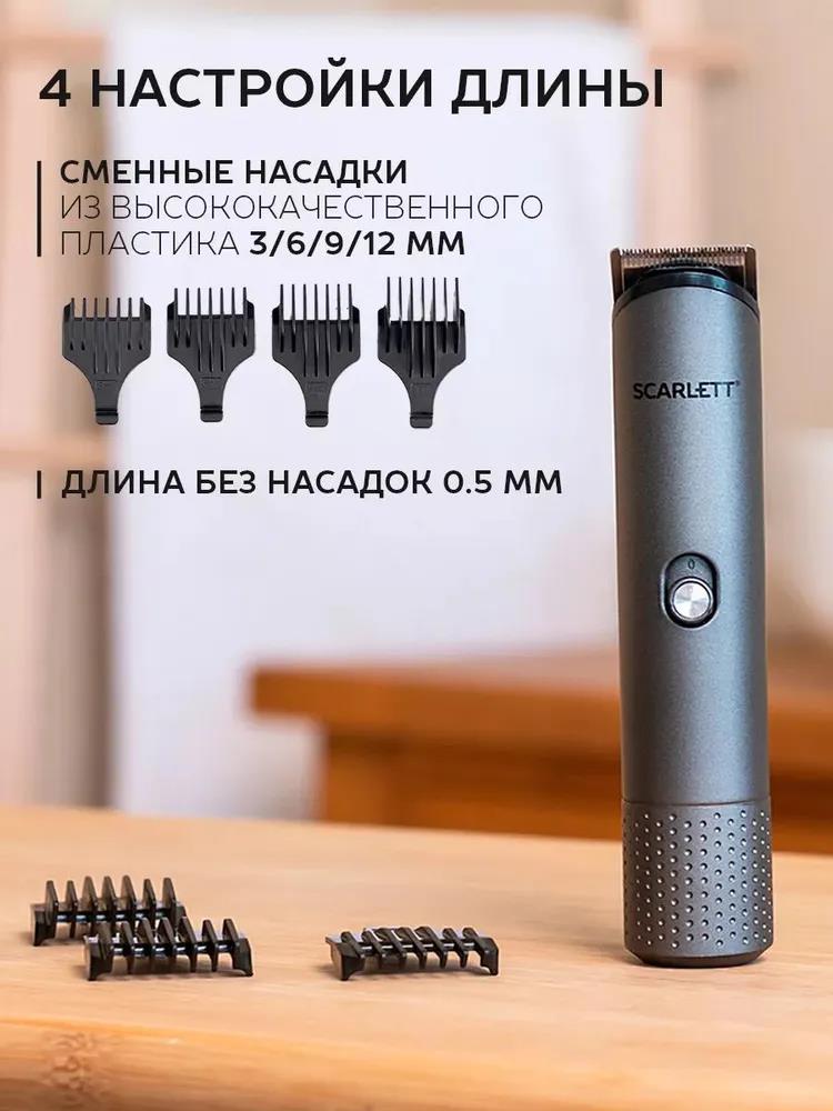 Новинка SCARLETT SC-HC63C103 – это многофункциональный прибор в современном и компактном дизайне. Корпус устройства выполнен из высококачественного пластика, при этом обладает эргономичной формой для обеспечения комфорта во время использования. Заряда Li-ion батареи хватает на 1,5 часа работы, а также прибор поддерживает работу от сети через USB кабель, входящий в комплект. Полный цикл зарядки составляет 2,5 часа. Модель имеет цельнометаллический ножевой блок из нержавеющей стали шириной 31 мм. Для удобства ухода ножевой блок можно снимать и очищать от волос щеточкой, входящей в комплект. Также модель комплектуется 4 насадками из качественного пластика, позволяющими регулировать длину от 3 до 12 мм.