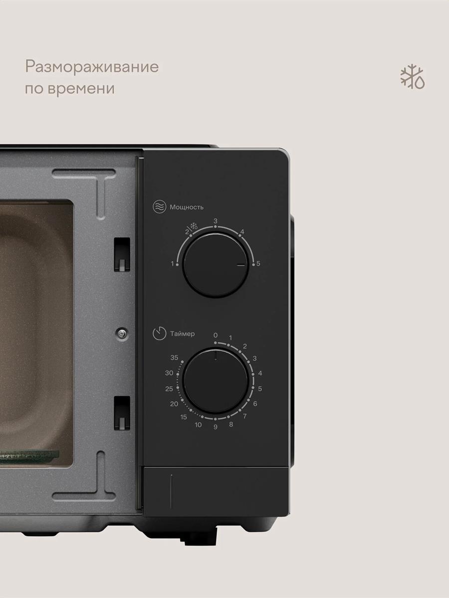 Tuvio — это бренд удобной бытовой техники, придуманный в Яндексе. Микроволновая печь MW01BB — простое и надёжное решение для ежедневной готовки. Камера объёмом 20 литров с подсветкой подходит для разогрева и приготовления разнообразных блюд — от быстрых закусок до полноценных обедов. Мощность микроволновки — 700 Вт — можно отрегулировать и подобрать оптимальный режим для каждого рецепта, сохраняя вкус и текстуру продуктов. Функция разморозки ускоряет подготовку продуктов к приготовлению. Благодаря минималистичному дизайну и компактности микроволновка впишется в любой интерьер. За печью просто ухаживать: антипригарная поверхность внутри камеры легко очищается от загрязнений.
