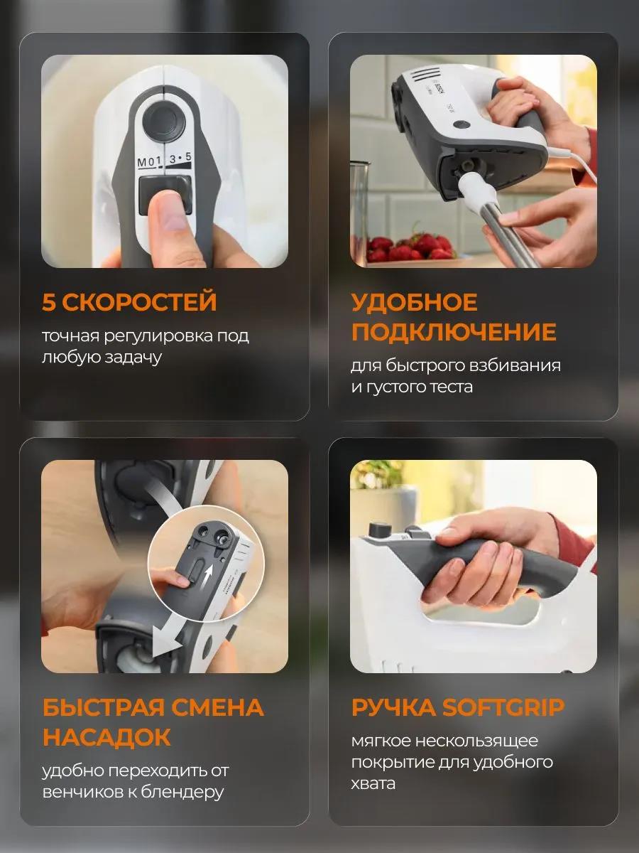 Миксер Bosch MFQ37470 (750 Вт /серый, белый) - Интернет-магазин Матрица: бытовая техника, электроника, товары для дома и др.