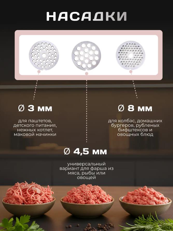 диск для фарша, насадка для приготовления колбас, насадка для кеббе, Соковыжималка