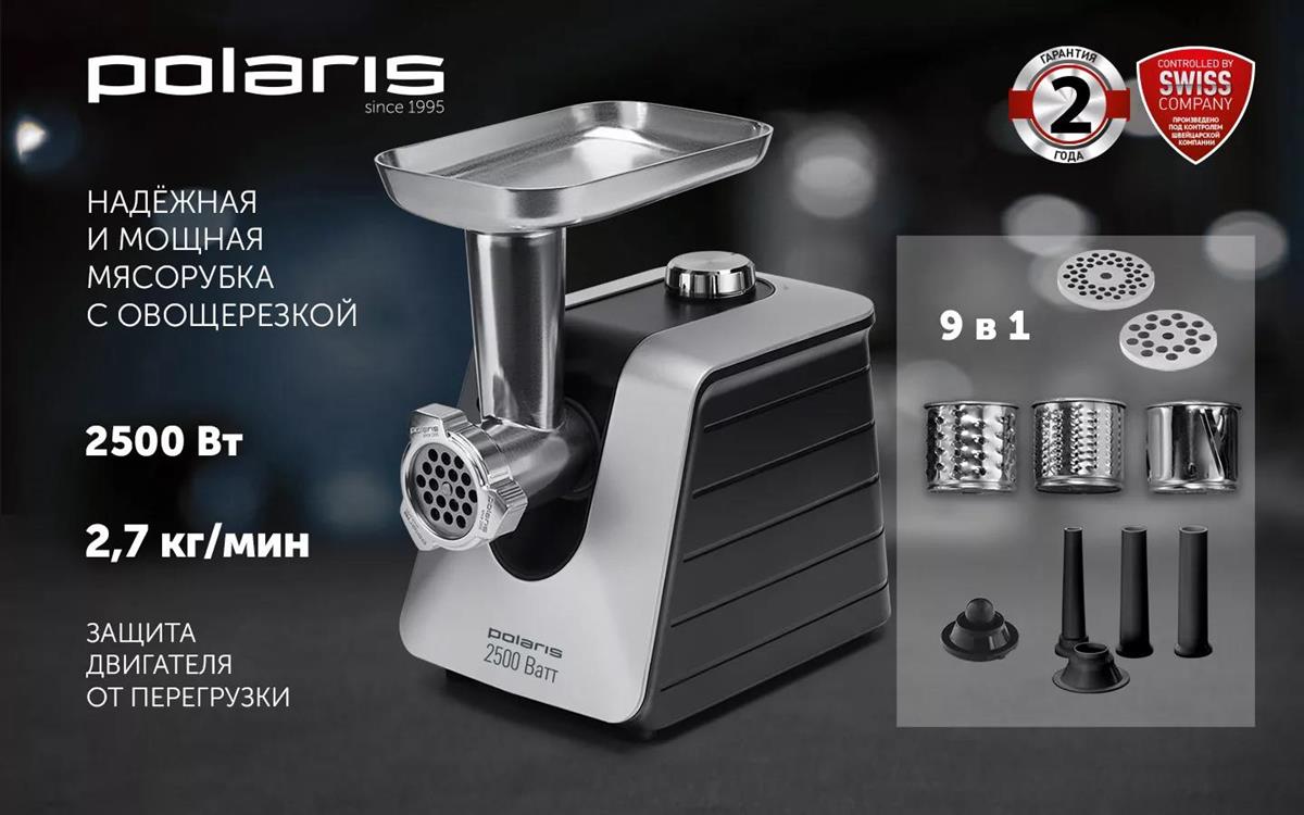 Мясорубка Polaris PMG2561 (2500 Вт /2,7 кг/мин/серебристый, черный) - Интернет-магазин Матрица: бытовая техника, электроника, товары для дома и др.