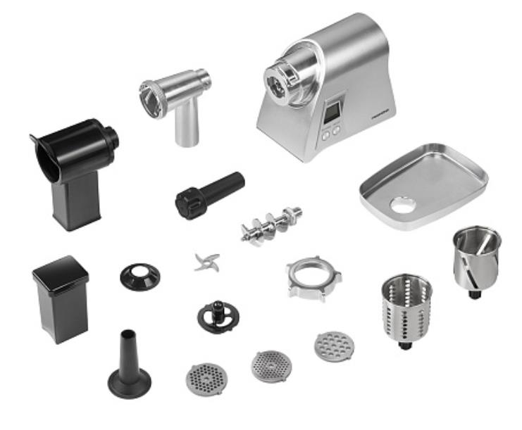 Мясорубка РЕДМОНД MG501 —многофункциональное устройство 2 в 1 — мясорубка и овощерезка — с увеличенной производительностью до 2,5 кг/мин. Благодаря комплекту насадок для овощей, мяса и колбасок прибор станет незаменимым помощником для хозяйки, желающей разнообразить ежедневный рацион вкусными и полезными блюдами. Мясорубка с литым корпусом из металла будет прочно стоять на столе, а в отсек для хранения аксессуаров можно убрать все насадки. Тройная защита двигателя гарантирует долгие годы комфортного пользования.