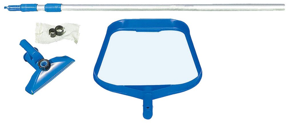 Назначение для надувного бассейна, для каркасного бассейна Вес 1.6 кг Материал металл, пластик Комплектация сачок для сбора мусора с поверхности воды; вакуумная насадка - пылесос с мешком для сбора мусора Дополнительная информация телескопическая алюминиевая ручка длиной 239 см обеспечивает доступ в любую точку бассейна диаметром до 457 см