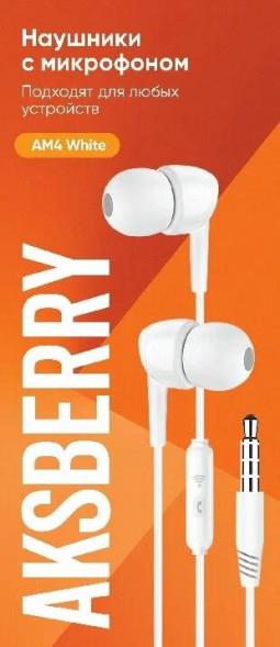 Наушники Aksberry (6900221420011) AM4 белый - Интернет-магазин Матрица: бытовая техника, электроника, товары для дома и др.