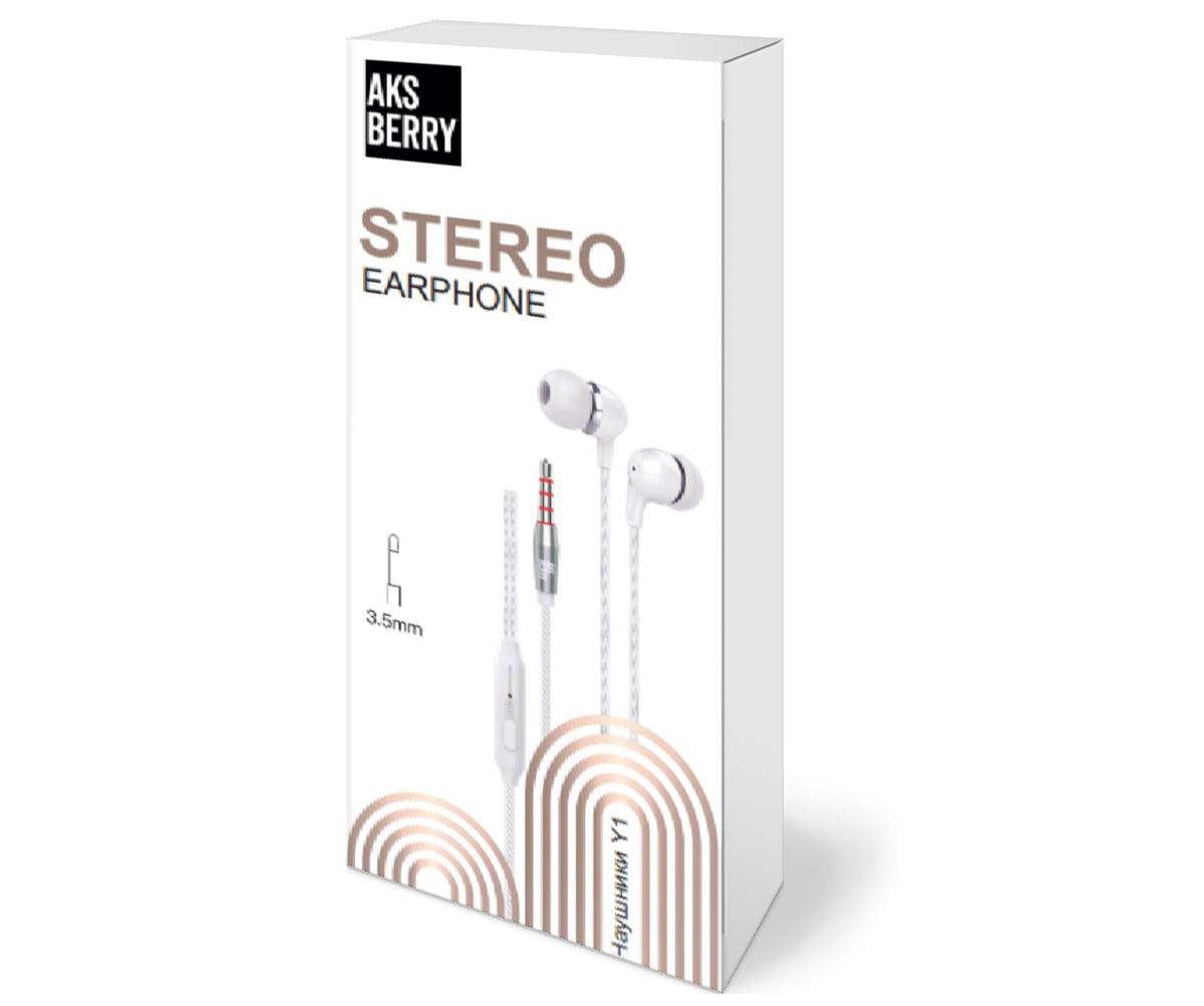 Наушники Aksberry (6900294010010) Y1 с микрофоном белый