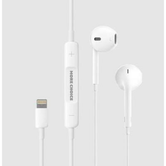 Наушники вкладыши Lighting 8-pin разъём с МК и рег.громкости длина 1.2м More choice G13 Подключение к устройству: проводные Сопряжение: Bluetooth Тип наушников: вкладыши Разъём: Lightning 8-pin Динамик: 10 мм Частотный диапазон: 20-20000 Гц Чувствительность: 100дБ±3дБ Импеданс: 32 Ом Микрофон: контроллер с микрофоном, который освобождает ваши руки при входящем вызове от удержания смартфона Управление проводом: функциональное управление двумя кнопками- ответ на вызов, пауза, переключение аудио, регулировка громкости Предназначение: наушники предназначены для разговора и для воспроизведения любых аудиофайлов Совместимость: со всеми телефонами и другими гаджетами (планшет, компьютер, иные источники объемного звука), имеющими аудио разъем Lightning 8-pin Кабель: TPE Длина кабеля: 1,2 м Вес: 25,5 г Комплектация: наушники, кольцо-держатель для смартфона, буклет.
