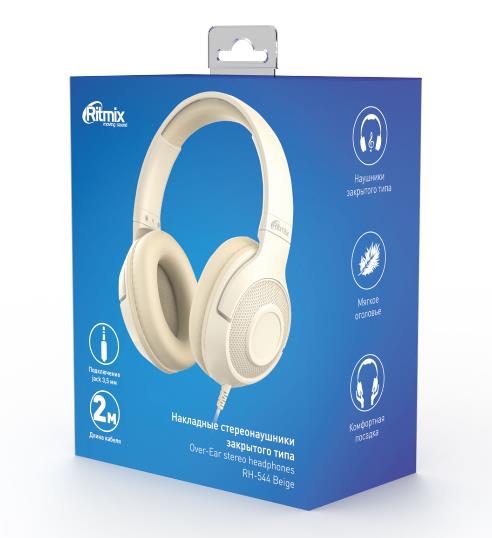 Наушники Ritmix RH-544, накладные, складная конструкция бежевый - Интернет-магазин Матрица: бытовая техника, электроника, товары для дома и др.