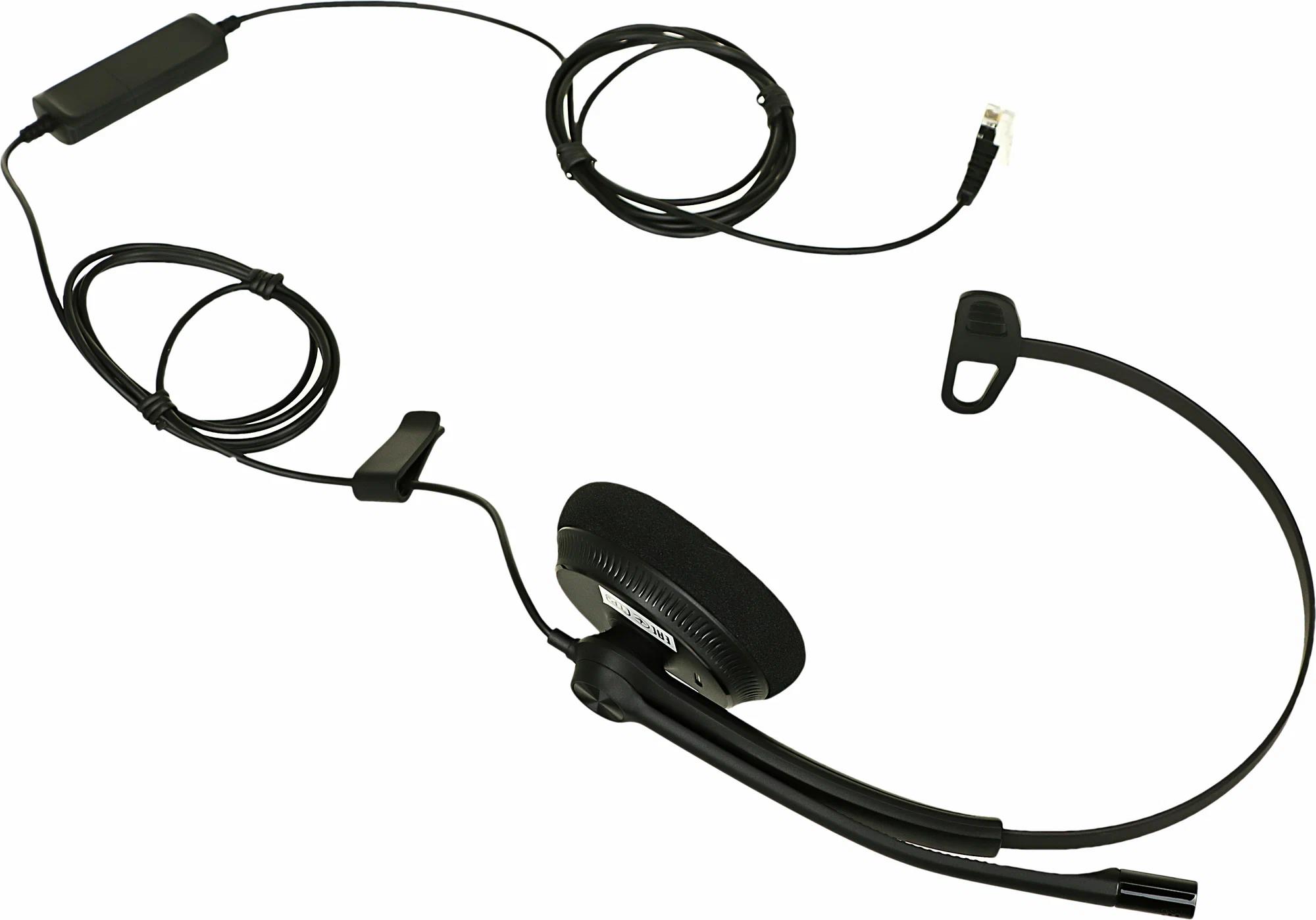 Тип: проводная гарнитура; Конструкция: с одним наушником; Тип наушников: накладные; Цвет товара: черный; Тип крепления: оголовье; Выключение микрофона: есть; Разъём: RJ9; Длина кабеля: 1.2 м;