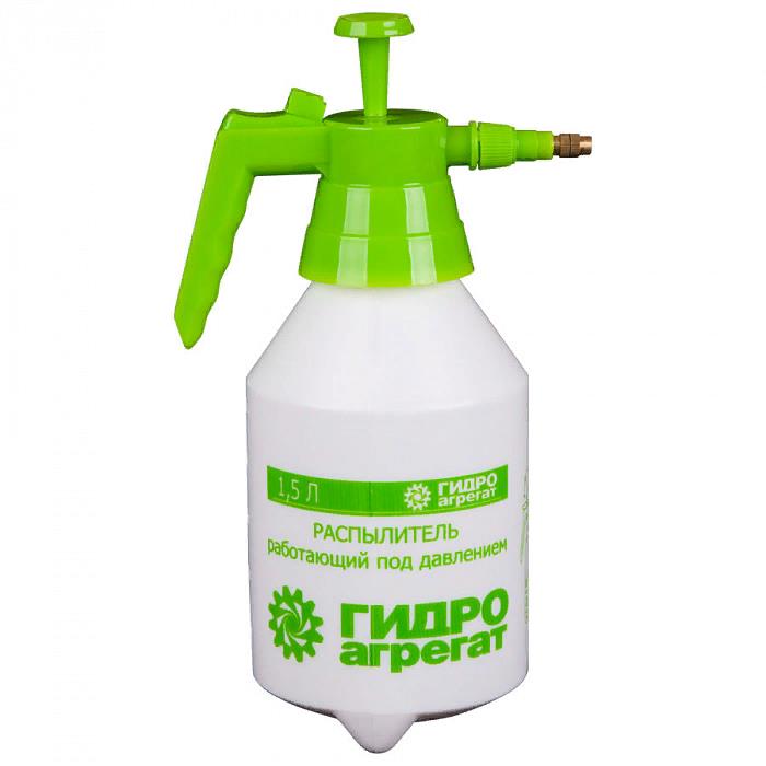 Распылитель работающий под давлением "Гидроагрегат" РП-0001/1,5. Объем 1,5л. Материал: пластик. Назначение: бытовое. Срок годности не ограничен.