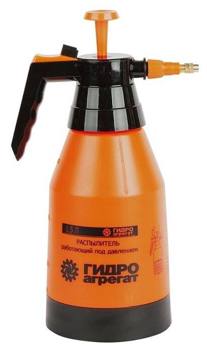 Распылитель работающий под давлением "Гидроагрегат" РП-0002/1,5. Объем 1,5л. Материал: пластик. Назначение: бытовое. Срок годности не ограничен.