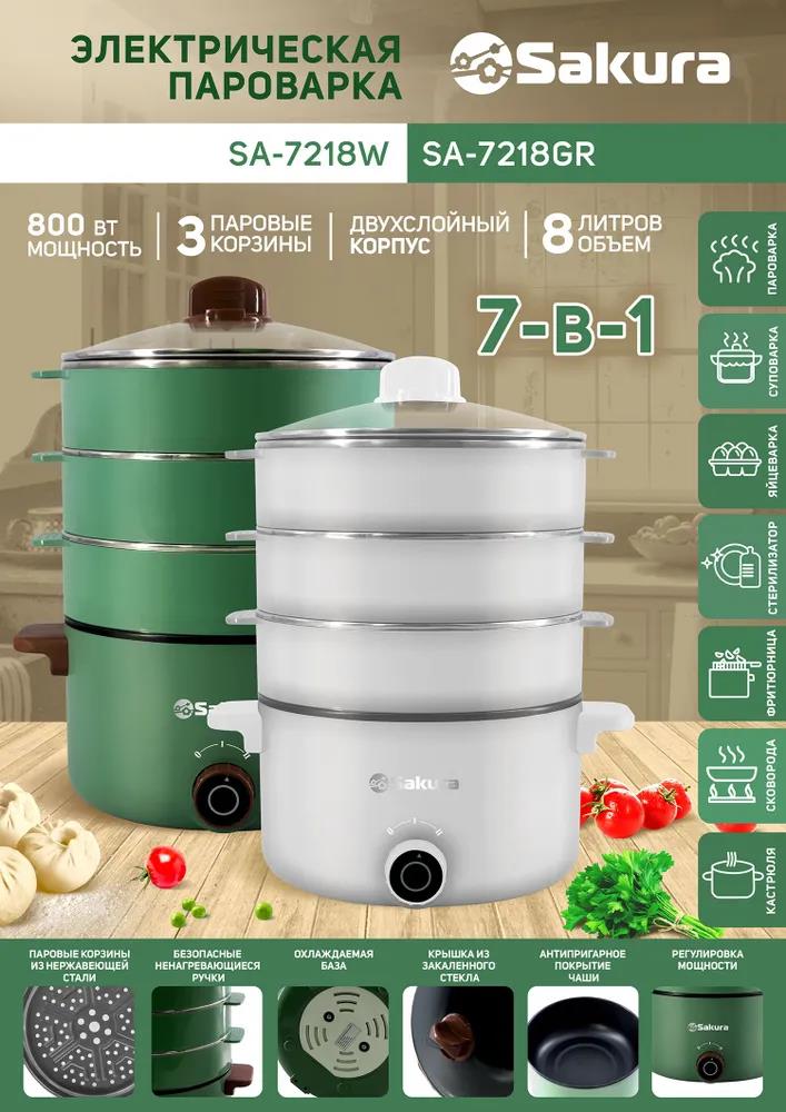 Пароварка Sakura SA-7218W (белый, серебристый)