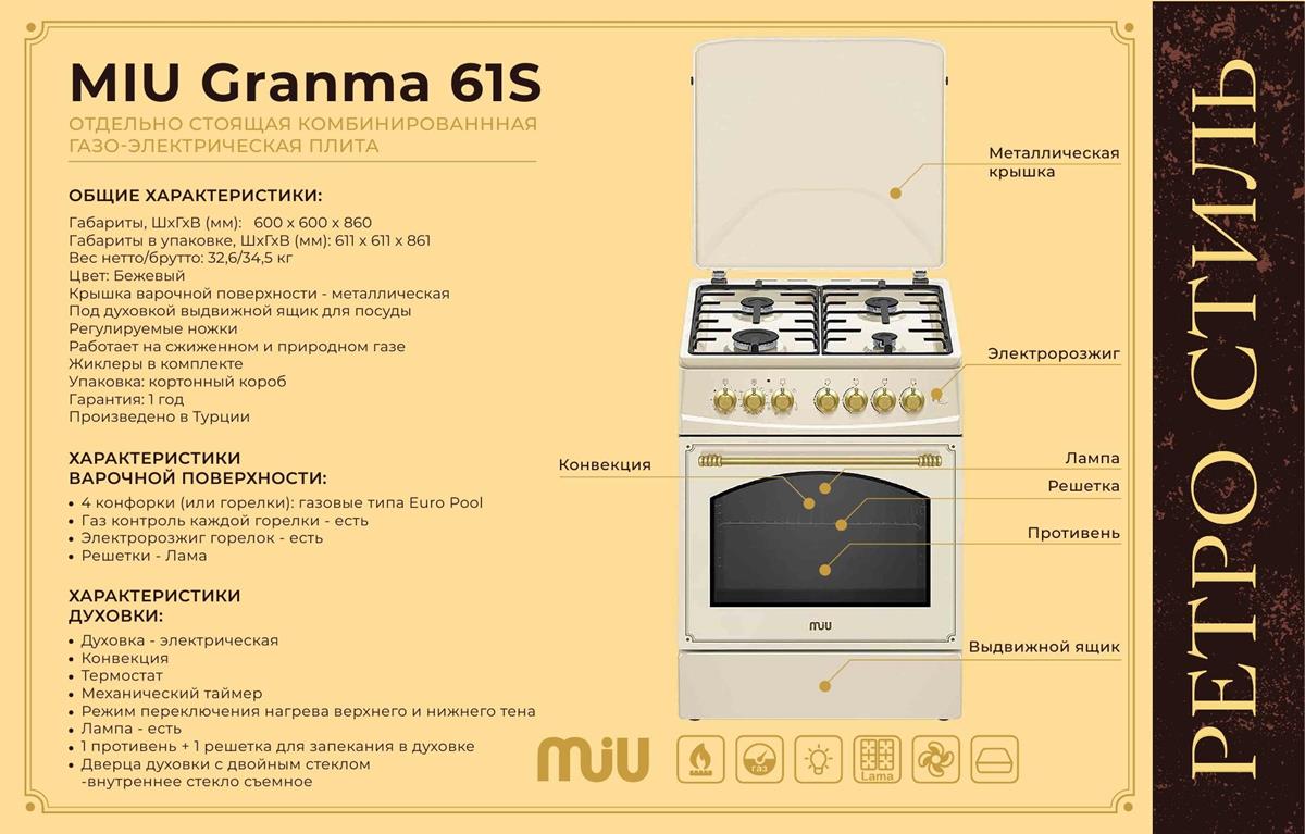Плита MIU Granma 61S,бежевый - Интернет-магазин Матрица: бытовая техника, электроника, товары для дома и др.