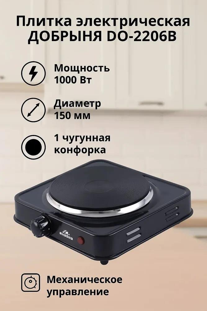 Плита настольная Добрыня DO-2206B (электрическая, чугун, черный)