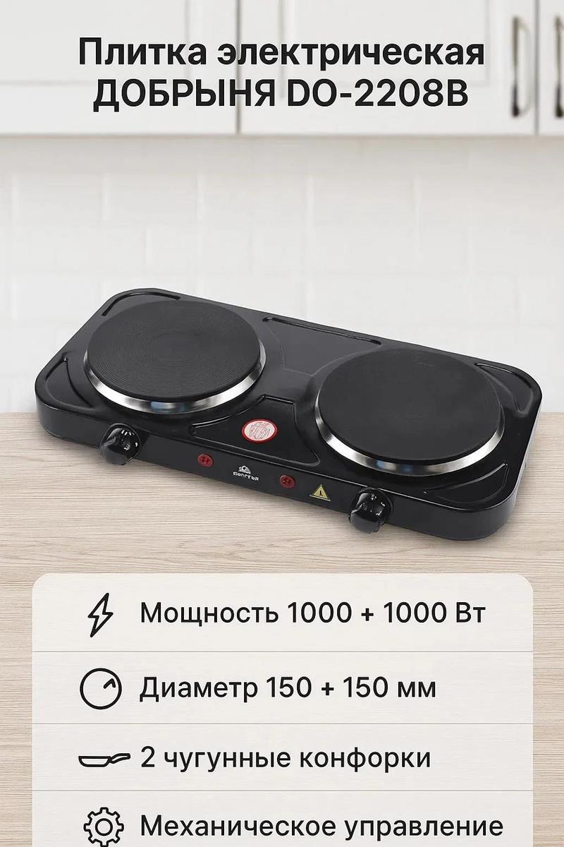 Плита настольная Добрыня DO-2208B (электрическая, чугун, черный)